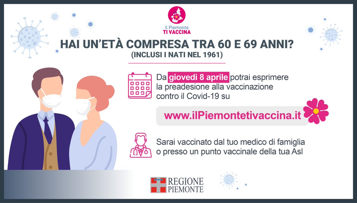Sul portale il piemonte ti vaccina, diventato ormai punto di riferimento per le adesioni di tutte le fasce d'età già raggiunte dalla campagna, sarà infatti inoltre, sempre sul portale dei vaccini piemontesi, da domani sarà possibile formulare la propria adesione per le persone di età compresa tra i 50 e i 55. Da domani (lunedì 15 febbraio) parte la campagna il piemonte ti vaccina per raccogliere le adesioni alla vaccinazione degli anziani over 80 e del personale docente e non docente di scuole, formazione professionale e università. Gli over55 possono comunque manifestare la propria adesione sul. Vaccini covid, al via l'8 aprile le preadesioni per gli over 60: Come funziona il portale per prenotare la vaccinazione anti covid?